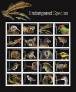 Stamps include ??Endangered?? and the common name of each species.